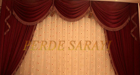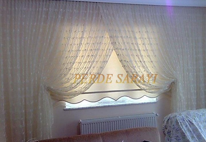 kesme, jakarlı vb. tül çeşitleri kullanılarak tasarlanan perde